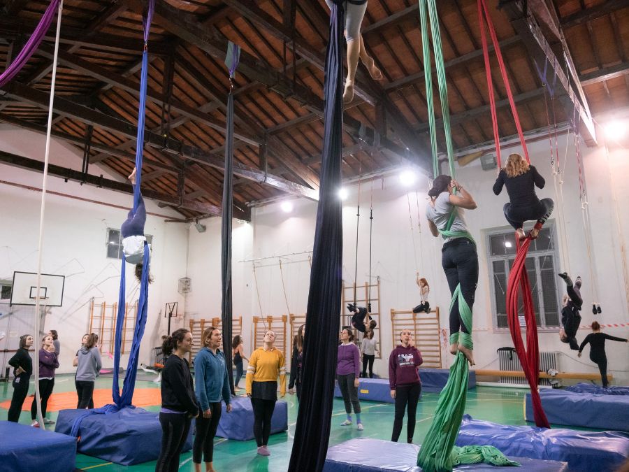 Per chi ha già esperienza e padronanza delle basi, ci sono i corsi per tutti i livelli intermedi e avanzati. Ogni corso è un’immersione profonda nelle tecnica del tessuto aereo o del trapezio fisso con figure, salite, chiavi, nodi, cadute, sequenze semplici e complesse, dinamiche e transizioni fluide, affinando la pulizia del movimento e la precisione. Ogni lezione si struttura con: riscaldamento e preparazione fisica a terra, potenziamento mirato per aumentare forza, resistenza e flessibilità, sessione di tecnica in aria e un momento finale di allungamento. L’obiettivo è acquisire abilità sempre più spettacolari attraverso un percorso di difficoltà crescente per un apprendimento graduale. E’ prevista una fase più creativa per realizzare una performance di gruppo a conclusione dell’anno
